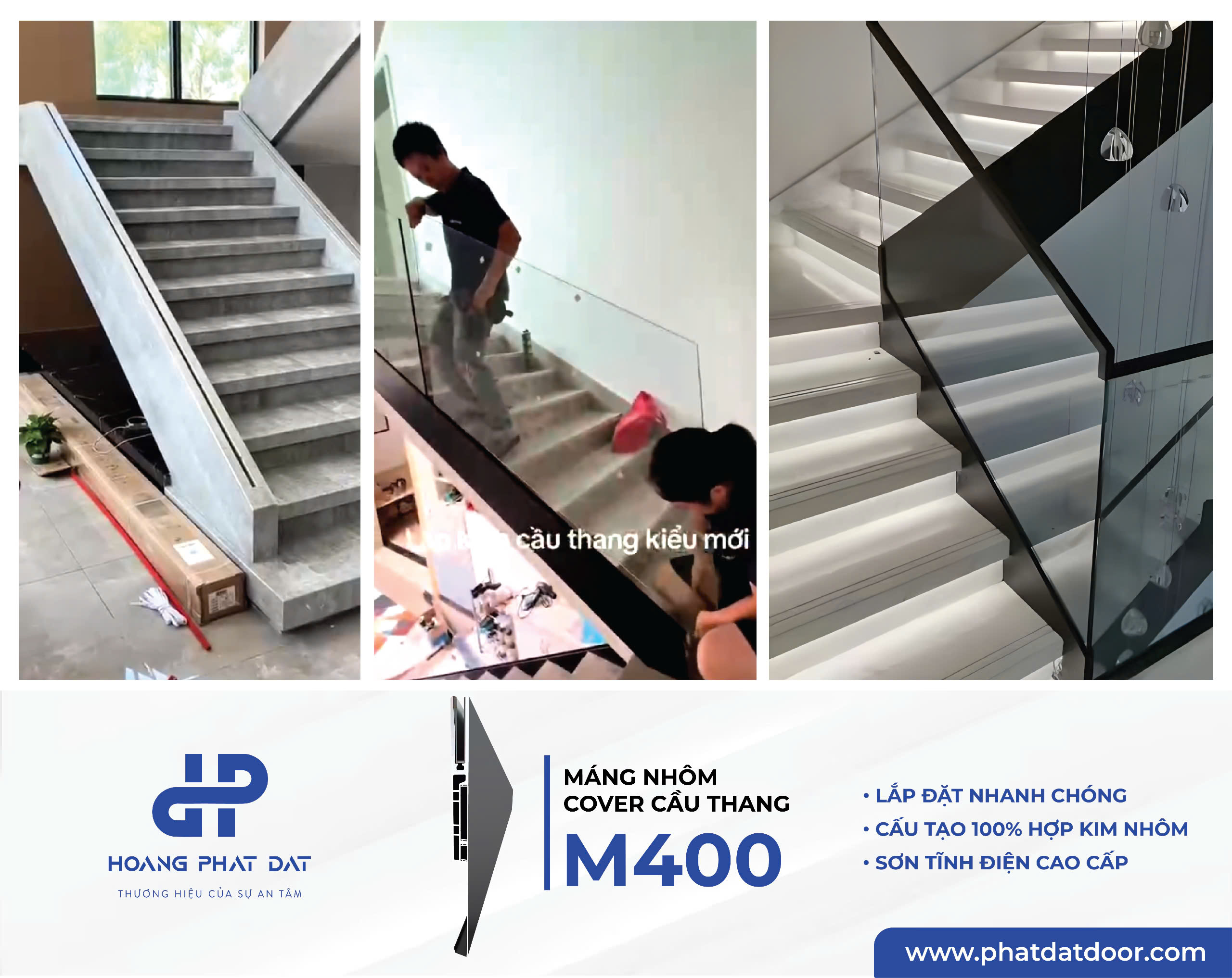 Máng nhôm Cover Cầu thang M400 Hoàng Phát Đạt