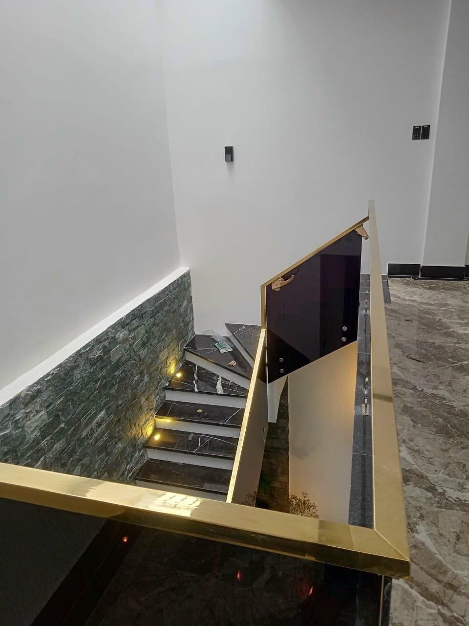 Mẫu cầu thang kính inox sang trọng đã lắp đặt