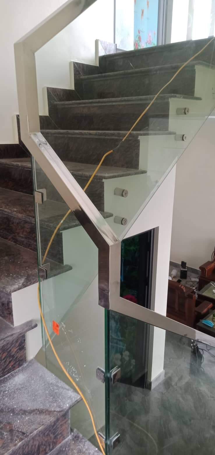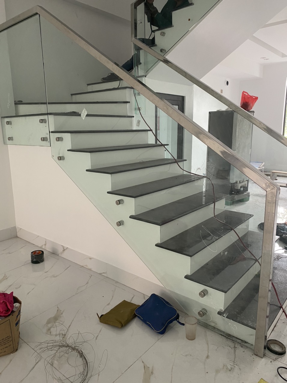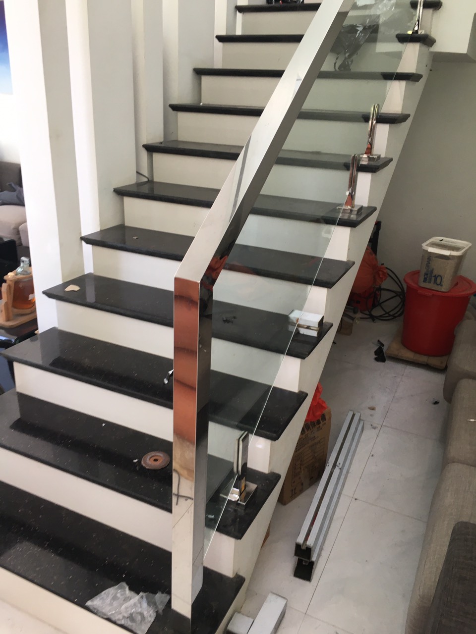 Báo giá cầu thang kính tay vịn inox giá mới nhất