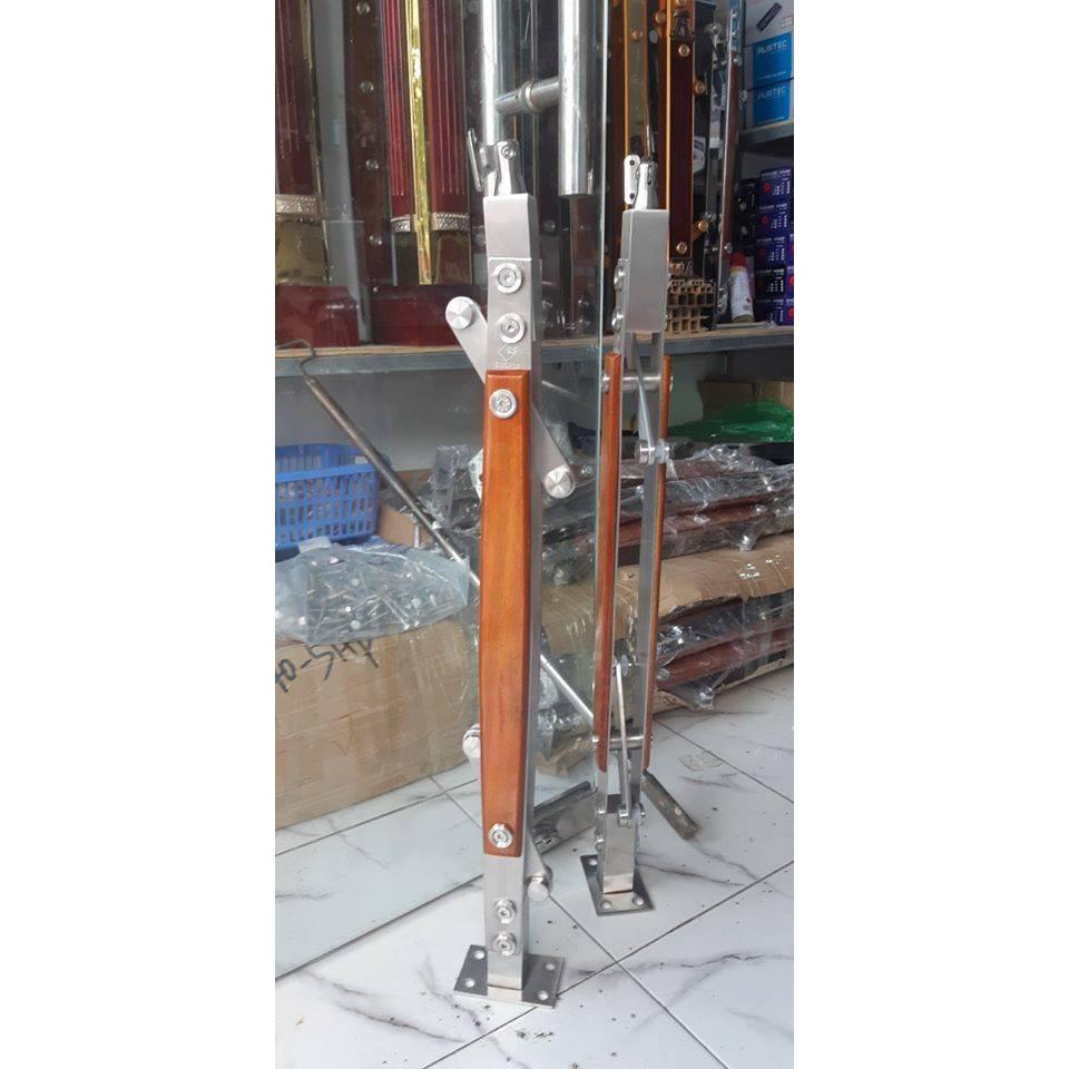 Trụ Cầu Thang Lan Can Gỗ, Trụ Kính Inox Má Gỗ Lim Nam Phi Trụ cầu thang kính và trụ cầu thang inox hiện nay có rất nhiều chủng loại, mẫu mã cho bạn tham khảo và lựa chọn để lắp đặt sao cho phù hợp với không gian, thiết kế của mọi công trình. Trụ cầu thangcó 2 loại : Trụ cầu thang bắt mặt và trụ cầu thang ốp má. Với 2 hệ trụ cầu thang này đều có nhiều chủng loại chất liệu khác nhau, đa dạng cho bạn lựa chọn .Trụ cầu thang được sử dụng khá phổ biến hiện nay cho cầu thang kính, cầu thang inox, lan can kính và có thể lắp cho các loại kính cường lực có độ dầy 10mm -15mm tùy theo nhu cầu sử dụng. .Trụ cầu thang được làm toàn bộ bằng chất liệu inox SUS 304 đảm bảo chất lượng cho mọi công trình trong nhà hoặc ngoài trời. Chịu được mọi môi trường thời tiết mà không lo bị han gỉ.