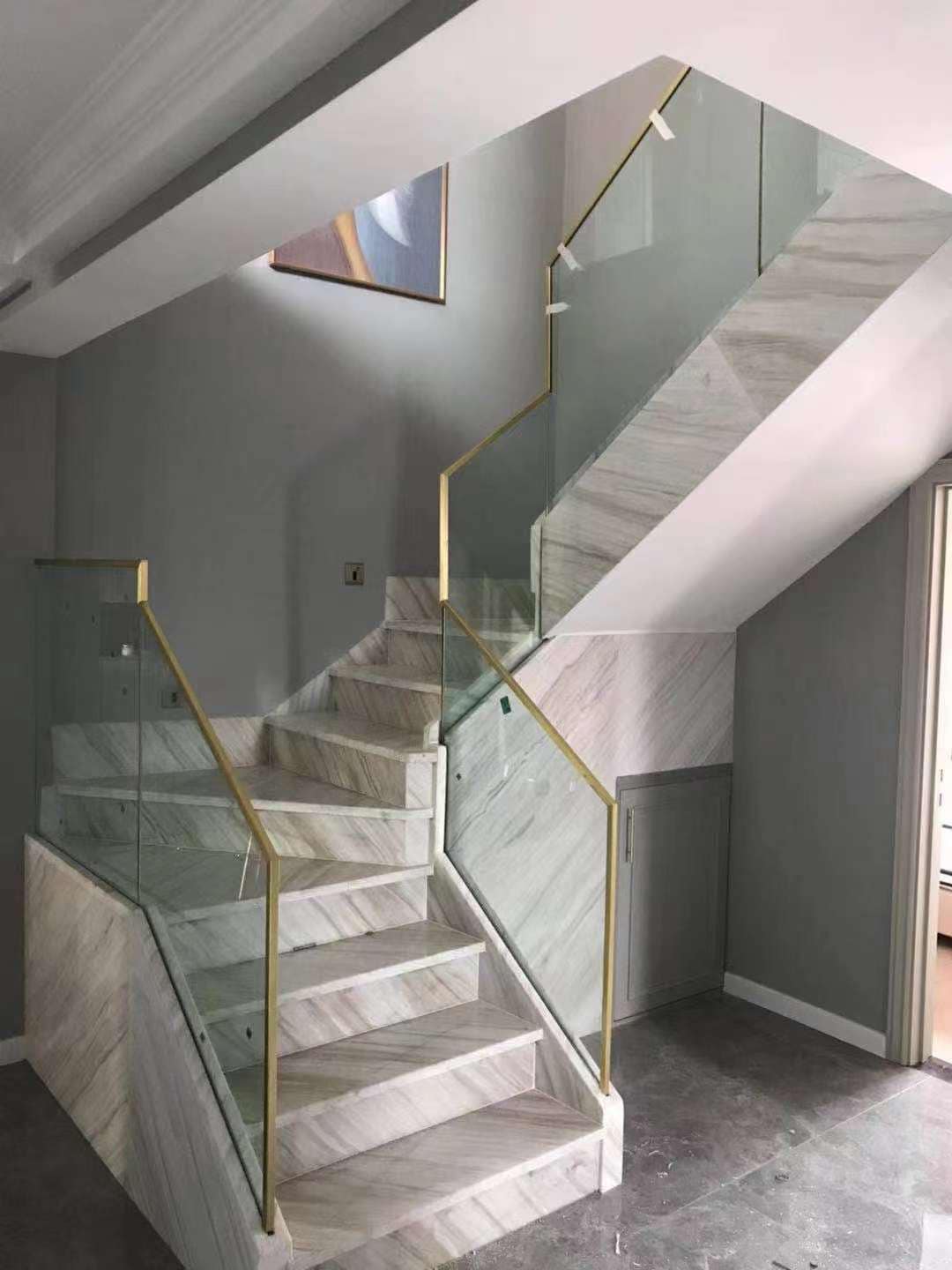 Tay vịn cầu thang kính, gỗ hoặc dây cáp.